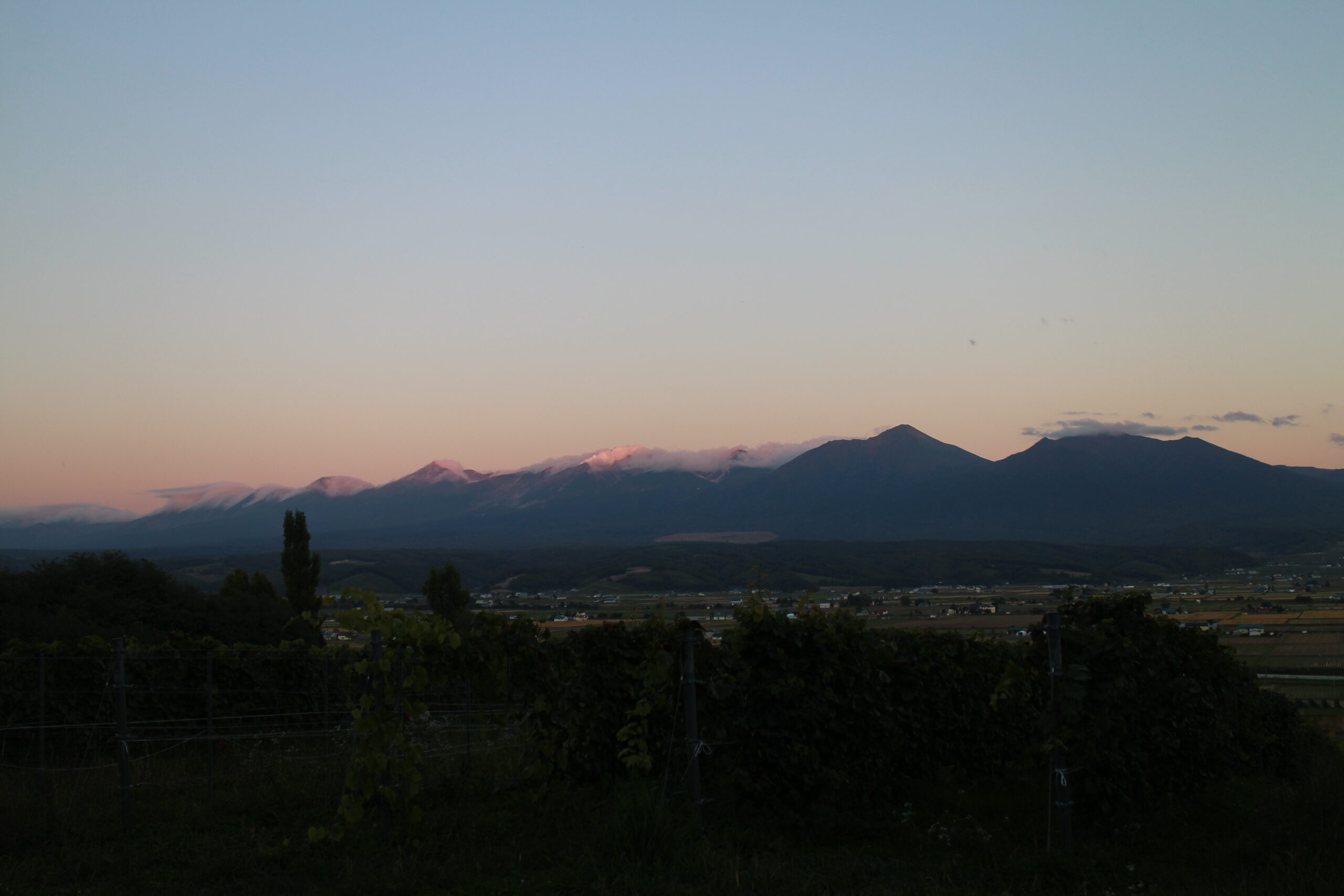 こんばんは(*^^*) 今朝、日の出前の一瞬の景色。山の白い部分が結構下がってい …