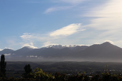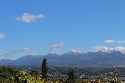 お昼ごろ、雲がなくなった十勝岳連邦を見ると美瑛岳の方も白くなってました。