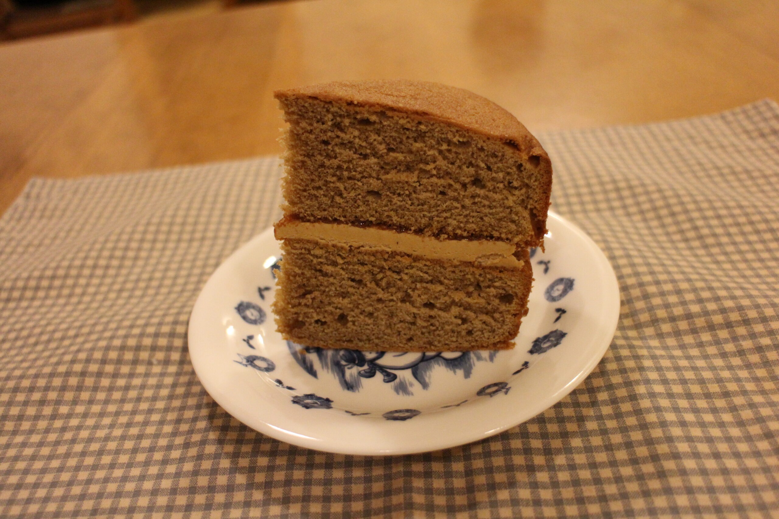 ヴィクトリアサンドはコーヒースポンジにコーヒーバタークリームとラズベリージャムをサンドしました。