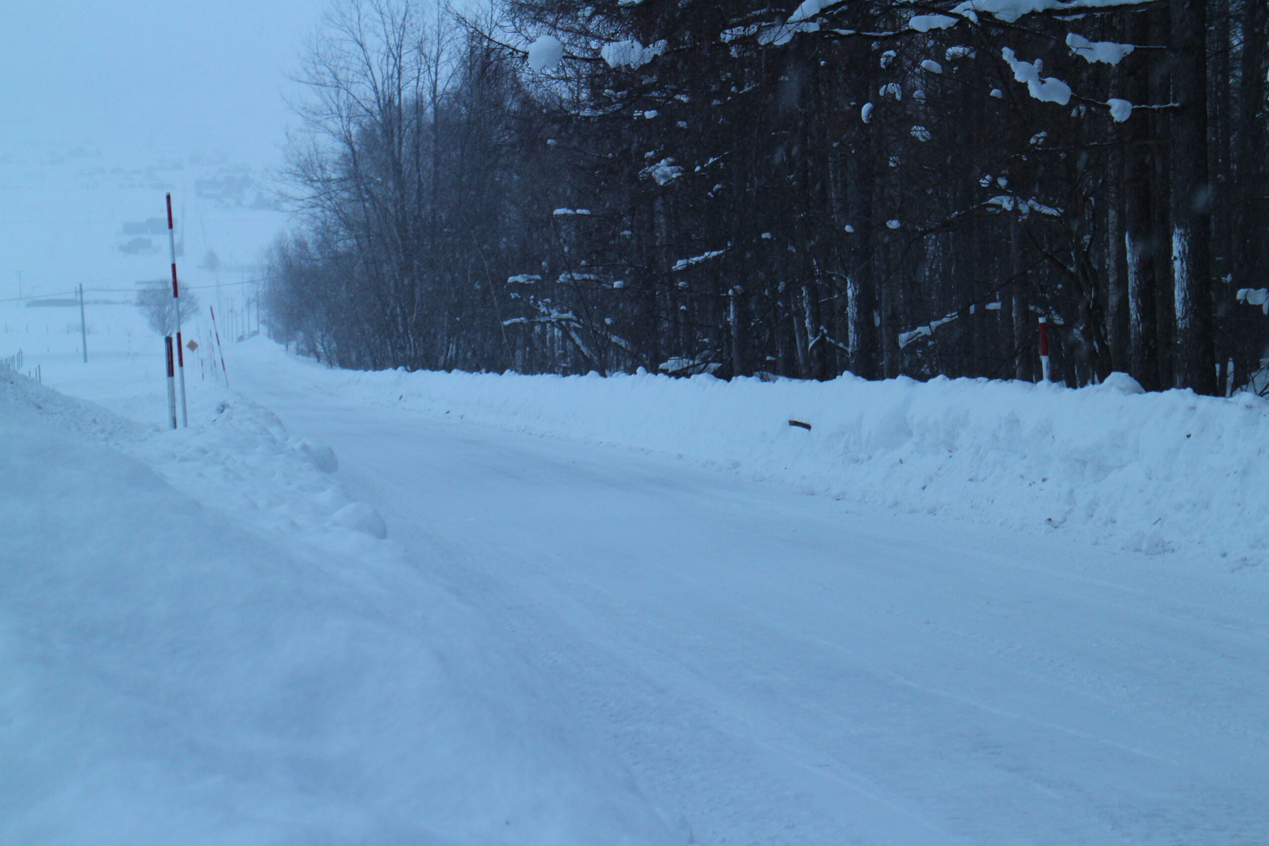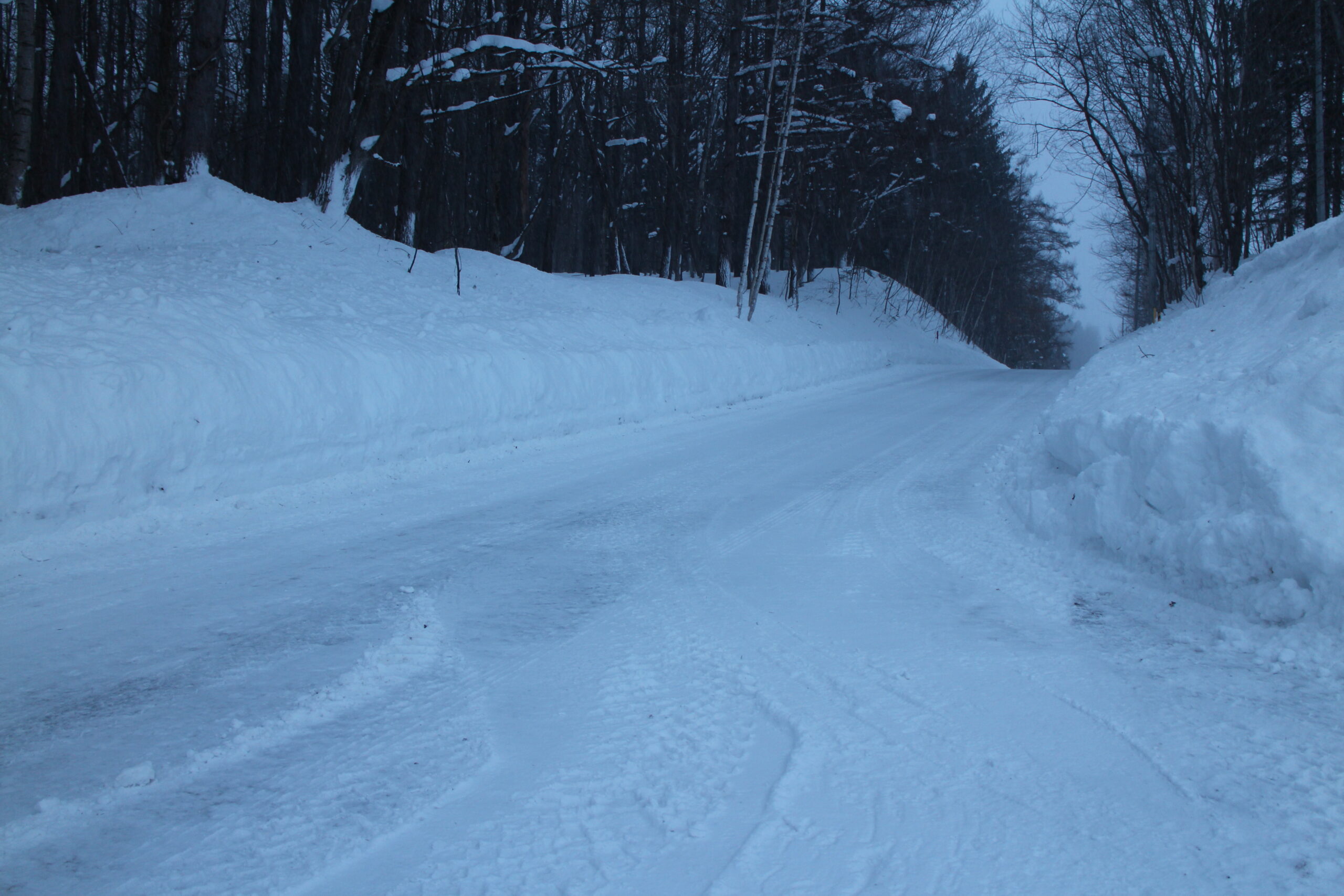 除雪車が通った後だったので路面が滑って、こわごわ歩きました。もう何度となく滑って転んでるので、かなり慎重になってます。