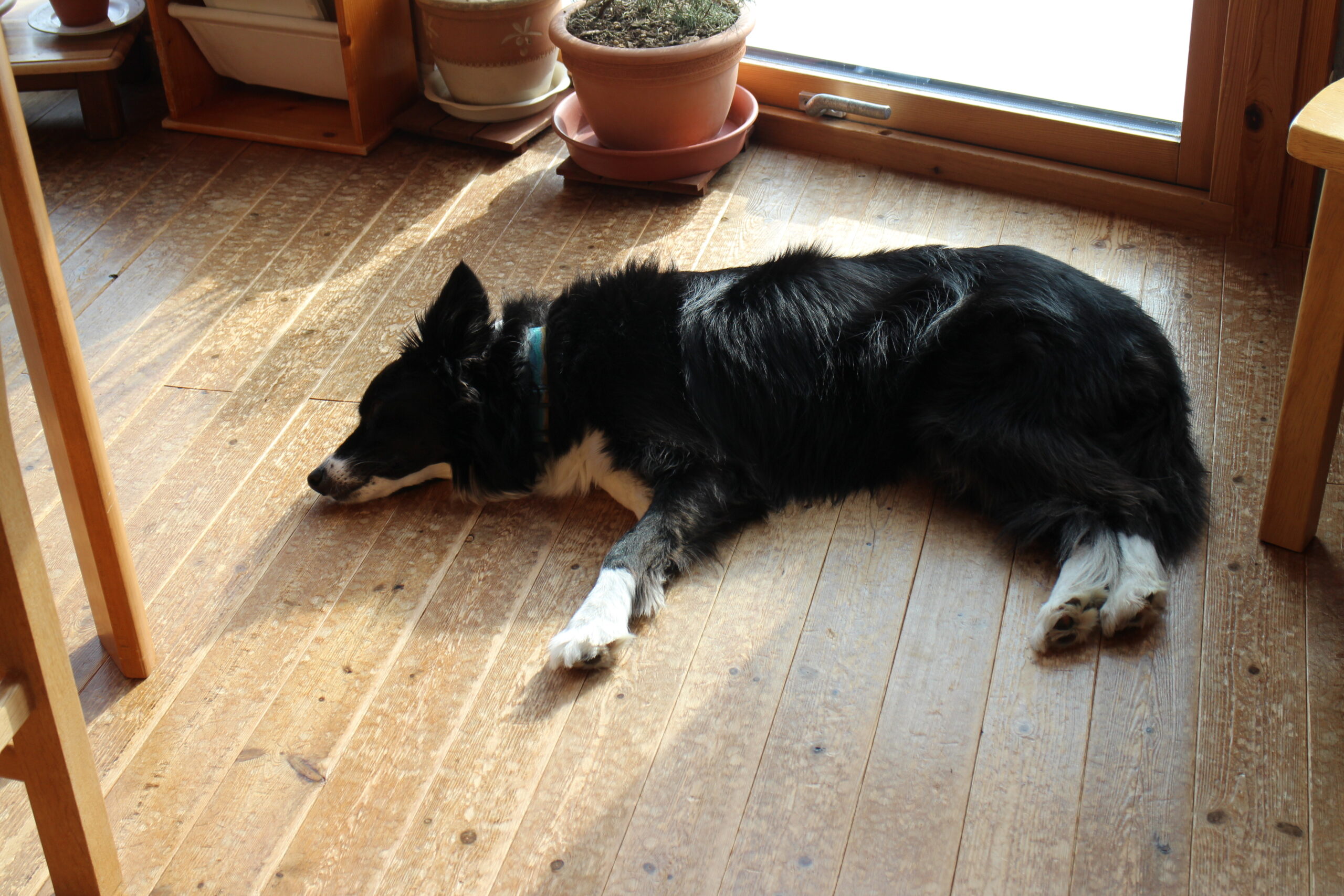 今朝のクロエ。気持ちよさそうに寝ているのではたぶん無くて、私がバタバタ動いてたから「退屈です」ポーズをしているところ。