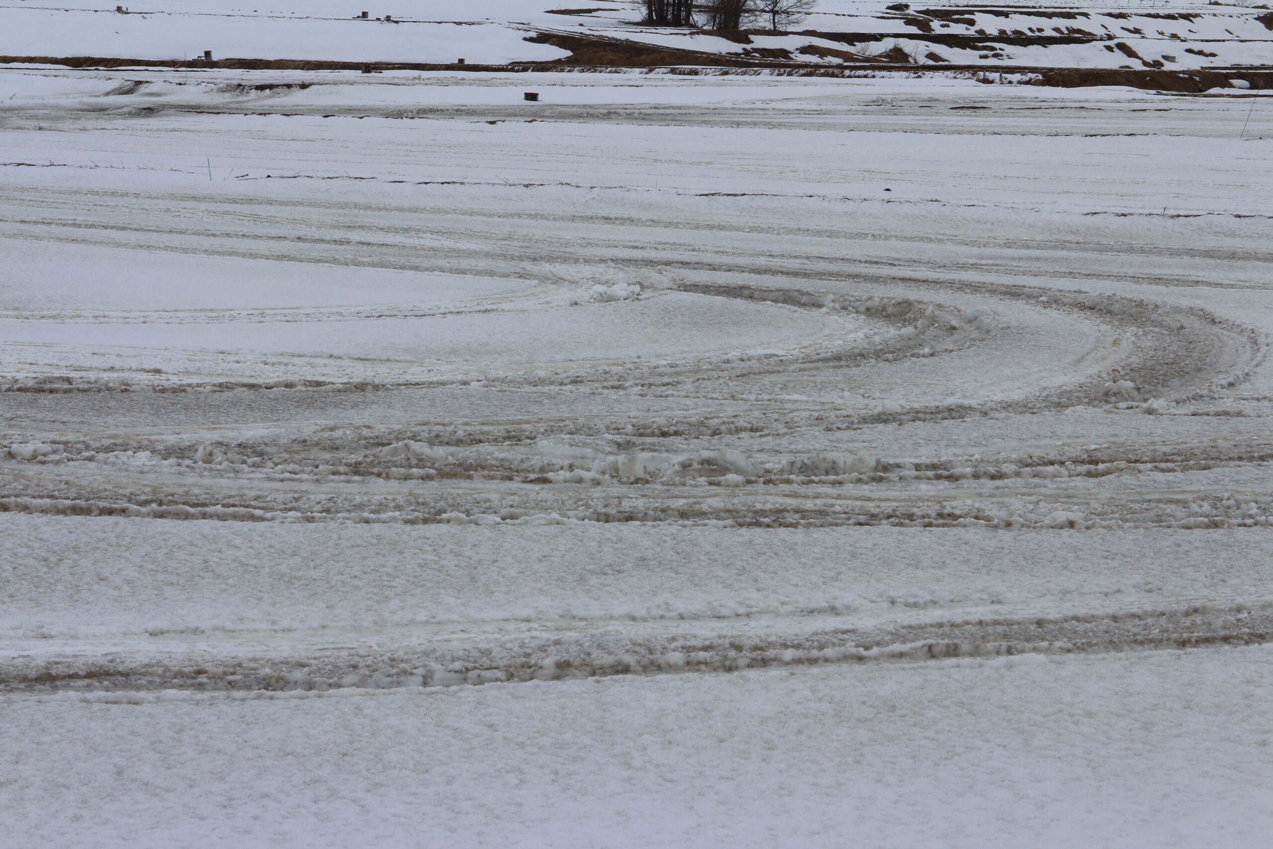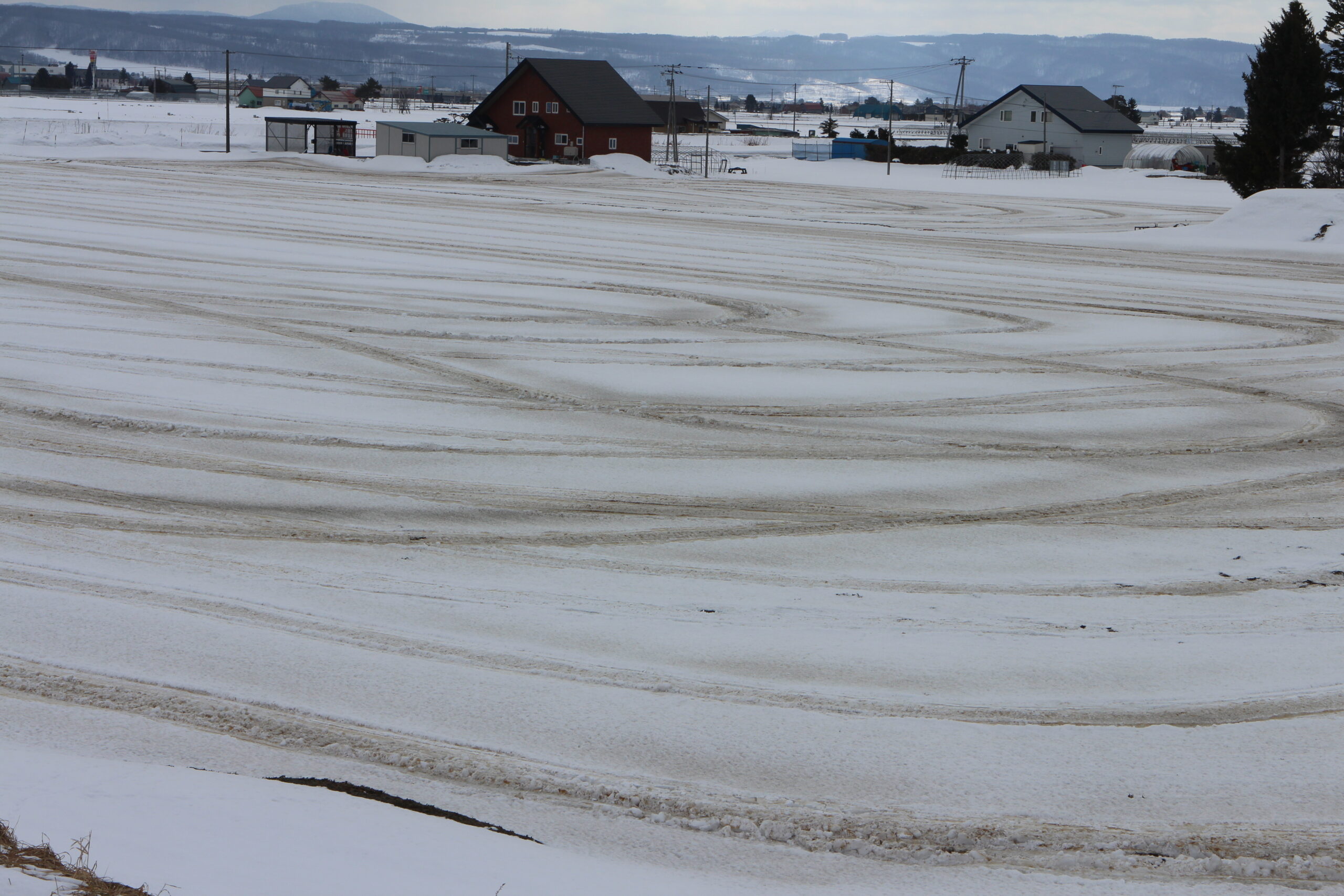 融雪剤を撒いた田んぼの風景です。