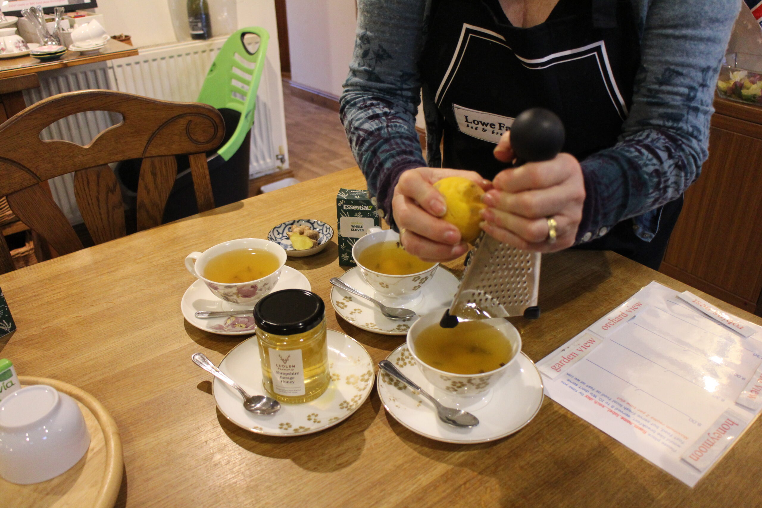 クローブとレモンゼストにボリジのはちみつを入れたお茶をいただき、身体がポカポカになりました。この頃イギリスも結構寒かったですから。