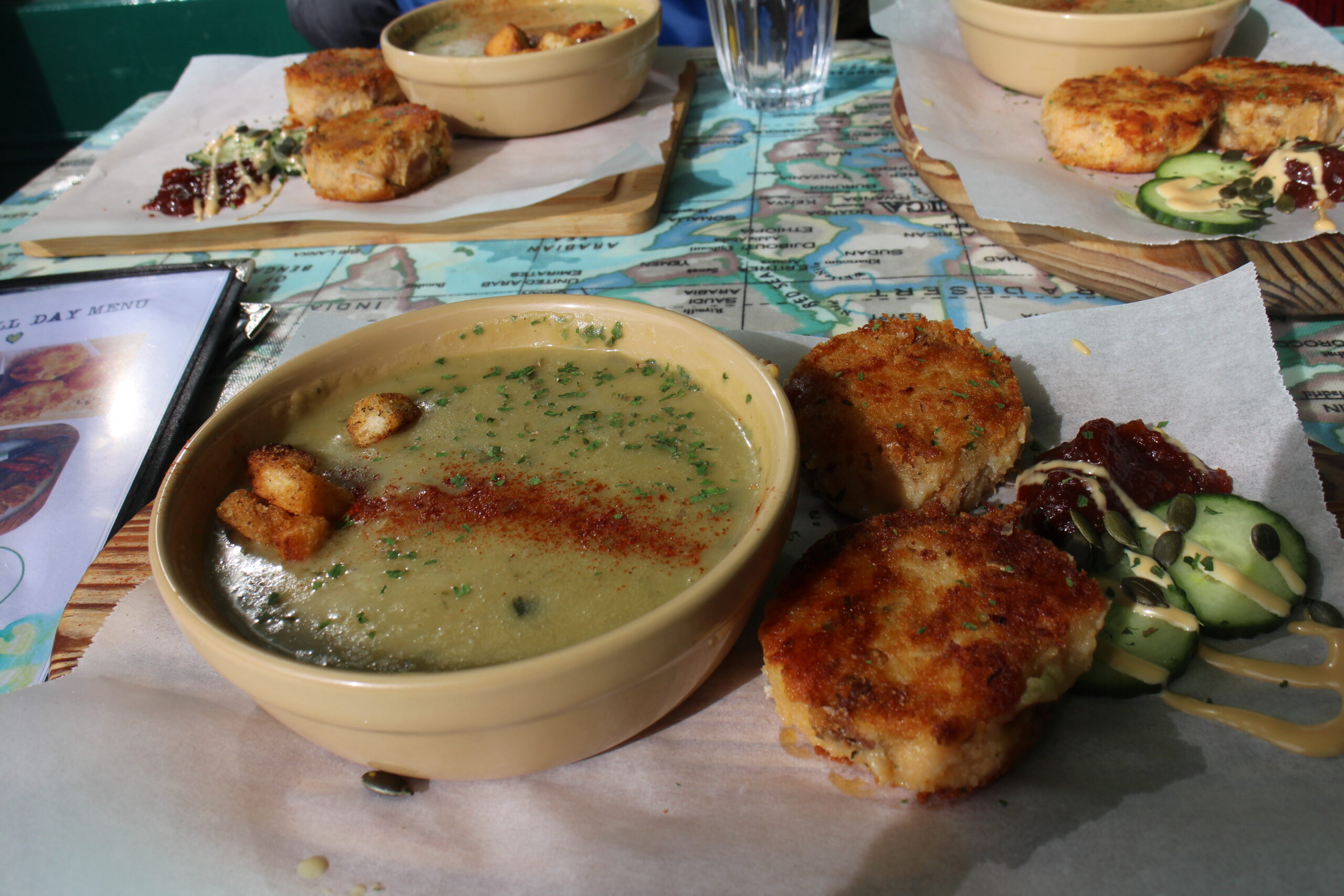 スープとポテトケーキのセット。